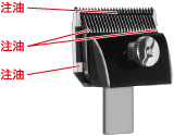 刃の両端とレール部の3ヵ所に1~2滴ずつ垂らします。